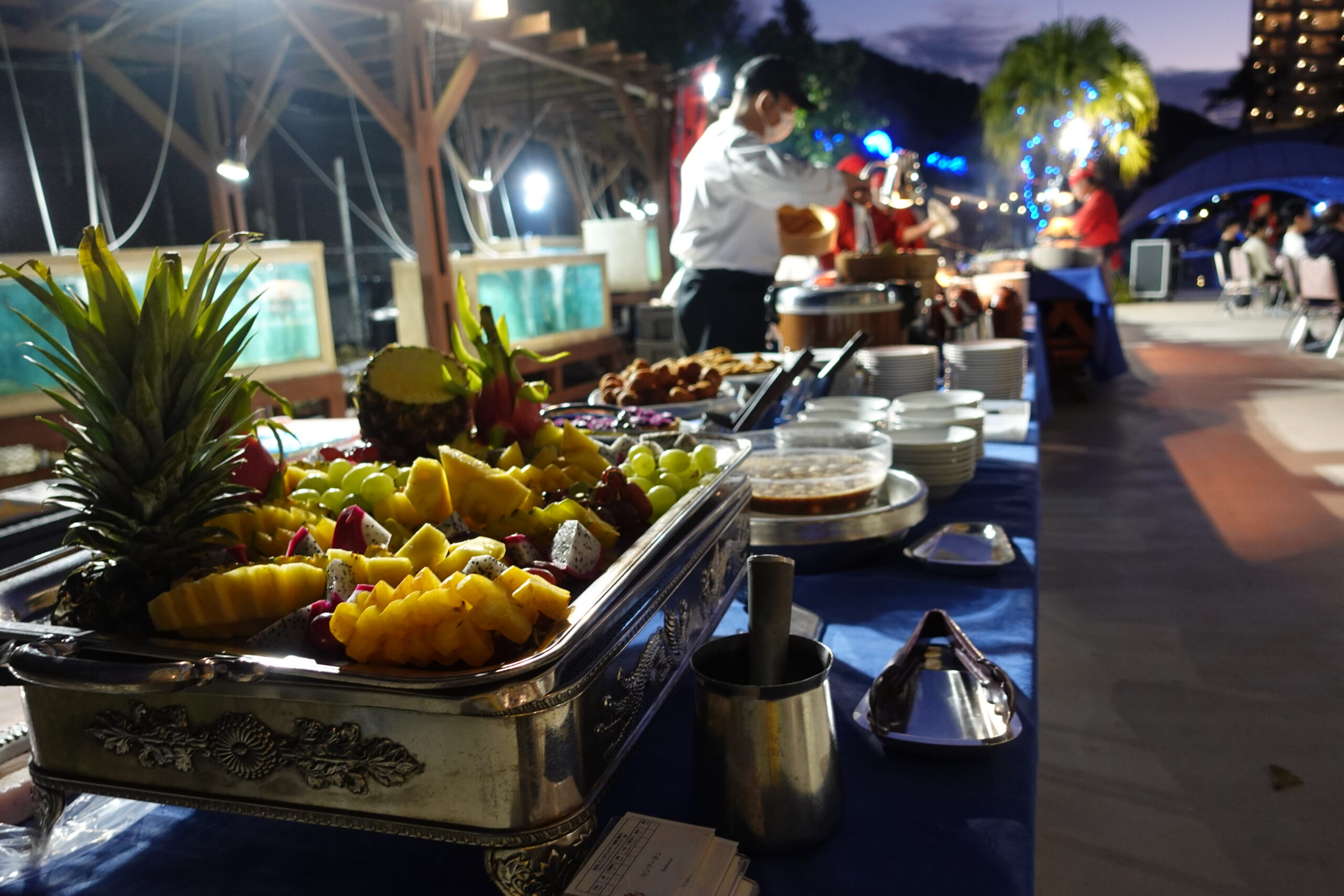 プールサイドのパーティー会場で沖縄料理を堪能しました!